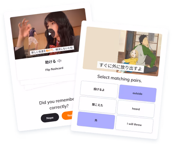 Recommended by your trusted Japanese influencers: Turn binge-watching into productive learning with technology that adapts to your level. Our interactive subtitles and AI coach help you naturally absorb vocabulary and grammar while enjoying the content you already love.